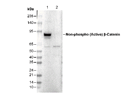 Non-phospho β-Catenin (S33/37/T41) Antibody [E13A9] recognizes endogenous β-catenin protein only when Ser 33, Ser 37, and Thr 41 are not phosphorylated. This antibody may also detect β-catenin protein when singly phosphorylated at Ser 33.