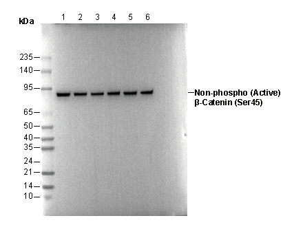 Non-phospho β-Catenin (Ser45) Antibody [K20N13] recognizes endogenous levels of β-catenin protein only when Ser45 is not phosphorylated.
