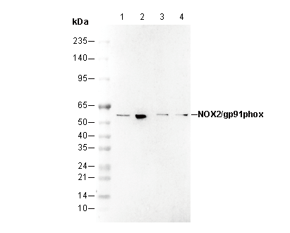 NOX2/gp91phox Antibody [G21P21] recognizes endogenous levels of total NOX2/gp91phox protein.