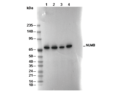 NUMB Antibody [D4K1] detects endogenous levels of total Numb protein.