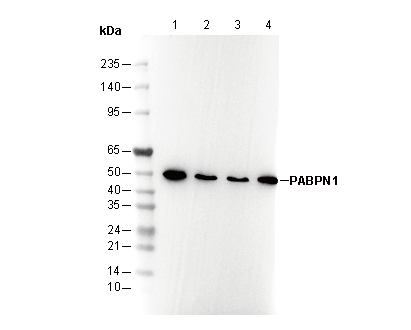 PABPN1 Antibody [G24K9] detects endogenous levels of total PABPN1 protein.