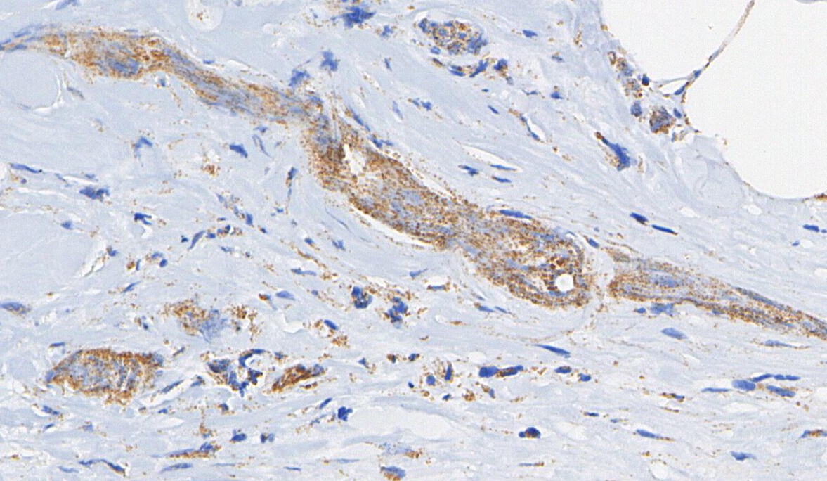 • Immunohistochemical analysis of formalin fixed paraffin embedded human Breast cancer tissue with F0743 at 1/100 dilution.