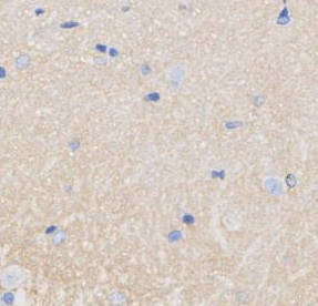 • Immunohistochemical analysis of formalin fixed paraffin embedded Rat brain tissue with F1138 at 1/200 dilution.