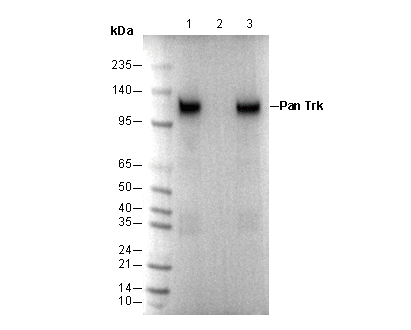 Pan Trk Antibody [B9H18] recognizes endogenous levels of total Pan Trk protein.