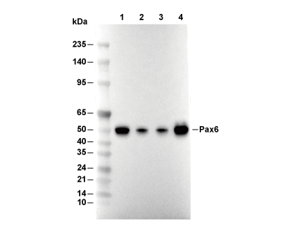 Pax6 Antibody [H2K10] detects endogenous levels of total Pax6 protein.