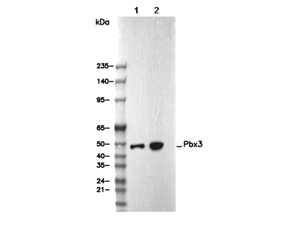 Pbx3 Antibody [A4N18] recognizes endogenous levels of total Pbx3 protein.