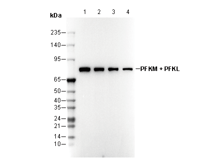 PFKM + PFKL Antibody [K8F12] detects endogenous levels of total PFKM + PFKL protein.