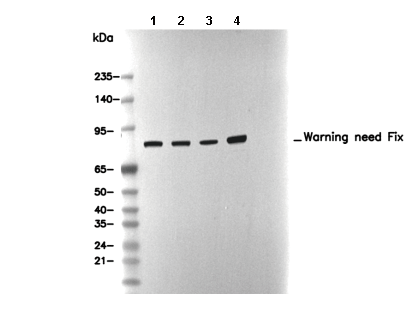• Lane 1: MCF7, Lane 2: HeLa, Lane 3: Raji, Lane 4: Jurkat