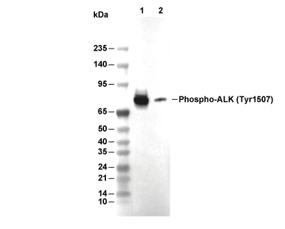 Phospho-ALK (Tyr1507) Antibody [P14J22] detects endogenous levels of total ALK protein only when it is phosphorylated at Tyr1507.