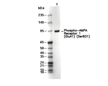 Phospho-AMPA Receptor 1 (GluA1) (Ser831) Antibody [D9B24] recognizes endogenous levels of AMPA Receptor 1 (GluA1) protein only when phosphorylated Ser831.