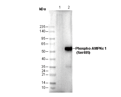 AMP-activated protein kinase (AMPK) is a type of ser/thr protein kinase that regulates energy balance. It is composed of three subunits - a catalytic alpha subunit and regulatory beta and gamma subunits. Each subunit is encoded by two or three different genes (alpha 1,2; beta 1,2; gamma 1,2,3). The kinase activity of AMPK is activated by stimuli that increase the cellular AMP/ATP ratio. AMPK plays a crucial role in regulating the activities of several key metabolic enzymes through phosphorylation. AMPKalpha can also be phosphorylated at Thr 172, Thr 258 and Ser 485 (α 1) / Ser 491  (α 2). It protects cells from stresses that cause ATP depletion by switching off ATP-consuming biosynthetic pathways. It has been reported that phosphorylation of AMPKα1 (Ser 485) can inhibit the ability of AMPK to phosphorylate at Thr 172 to some extent, thereby negatively regulating AMPK activity (PMID:21673100).