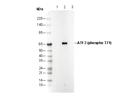 Phospho-ATF2 (Thr71) Antibody [F15L17] detects endogenous levels of ATF2 only when phosphorylated at Thr 71.