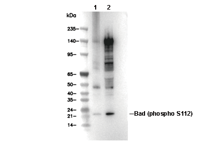 Phospho-Bad (Ser112) Antibody [F3L12] detects endogenous levels of total Bad protein only when it is phosphorylated at Ser112.