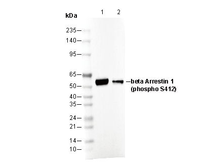 Phospho-β Arrestin 1 (Ser412) Antibody [B21D5] recognizes endogenous levels of total β-Arrestin 1 protein when phosphorylated at S412.