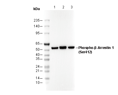 • Lane 1: HEK293 , Lane 2: HEK293 (β-arrestin 1 WT) , Lane 3: HEK293 (Ala412 mutant)
