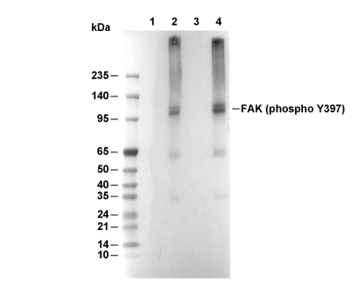 Phospho-FAK (Tyr397) Antibody [G24K11] detects endogenous levels of total FAK protein only when it is phosphorylated at Tyr397.