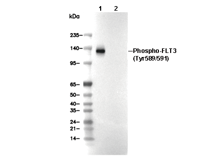 Phospho-FLT3 (Tyr589/591) Antibody [K5L11] detects endogenous levels of total FLT3 protein only when it is phosphorylated at Tyr589 and Tyr591.