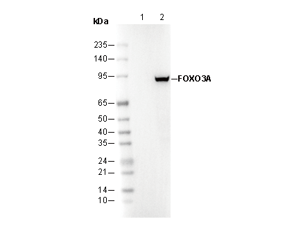 Phospho-FoxO3A (Ser253) Antibody [C5A15] recognizes endogenous levels of FOXO3A protein only when phosphorylated at Ser253.