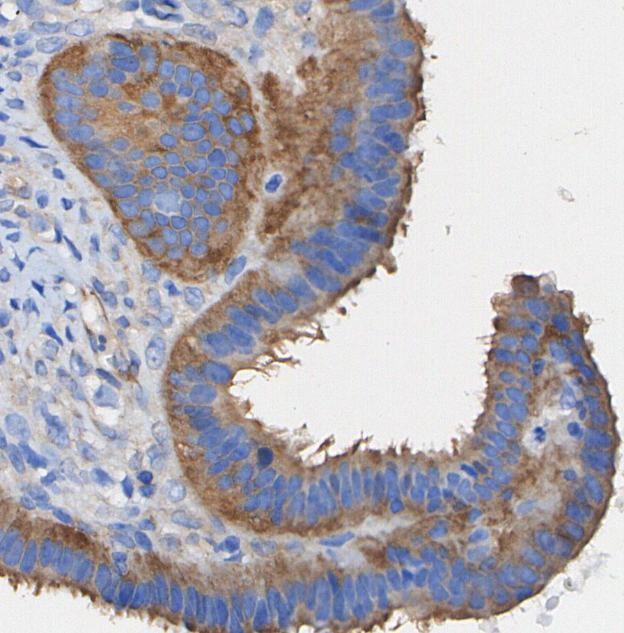 • Immunohistochemical analysis of formalin fixed paraffin embedded human Ovarian Cancer tissue with F0750 at 1/100 dilution.