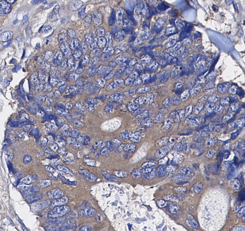 • Immunohistochemical analysis of formalin fixed paraffin embedded human Colorectal cancer tissue with F0247 at 1/100 dilution.