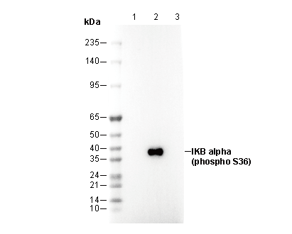 Phospho-IKB α (Ser36) Antibody [B13N13] recognizes endogenous levels of total IKBα protein when phosphorylated at Ser 36.