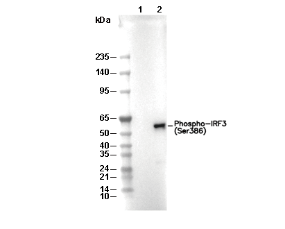 Phospho-IRF3 (Ser386) Antibody [L20H23] detects endogenous levels of total IRF3 protein only when phosphorylated at Ser 386.