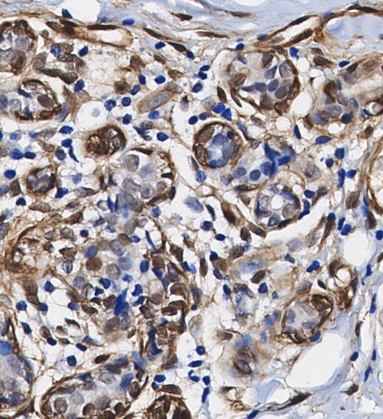 • Immunohistochemical analysis of formalin fixed paraffin embedded human Breast Cancer tissue with F1572 at 1/100 dilution.