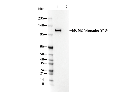 Phospho-MCM2 (Ser40) Antibody [M14L21] detects endogenous levels of MCM2 only when phosphorylated at serine 40.