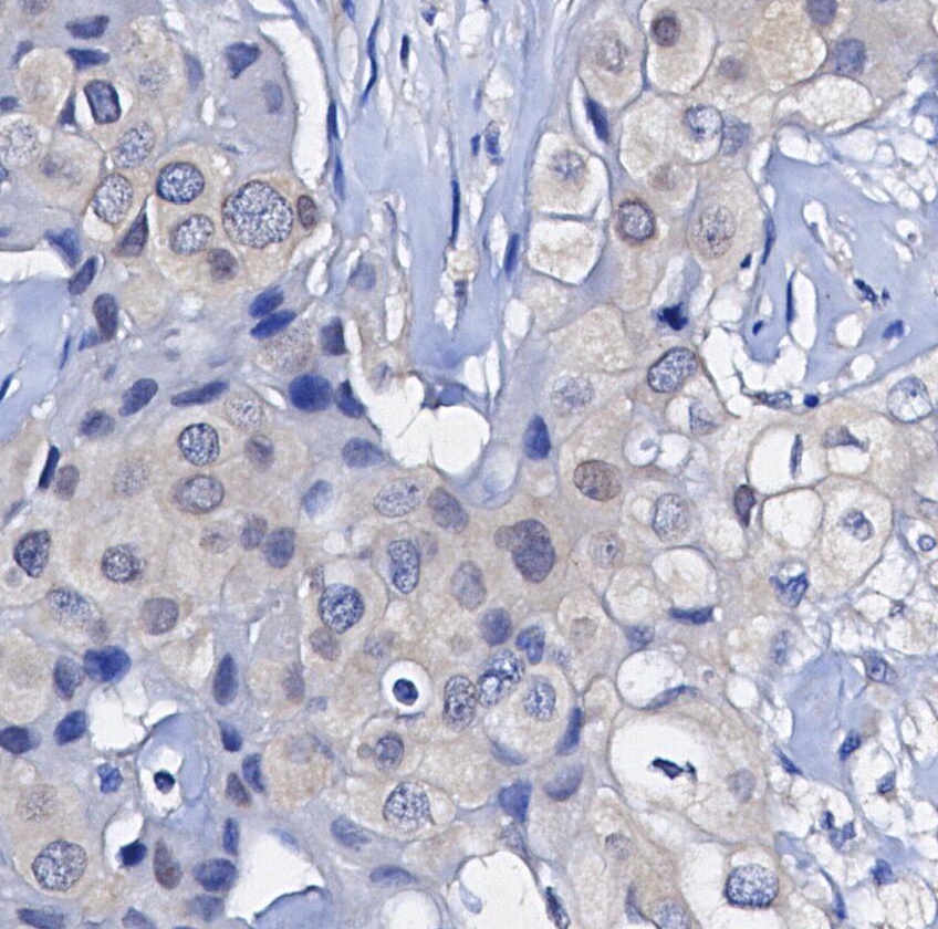 • Immunohistochemical analysis of formalin fixed paraffin embedded human breast cancer tissue with F0557 at 1/100 dilution.