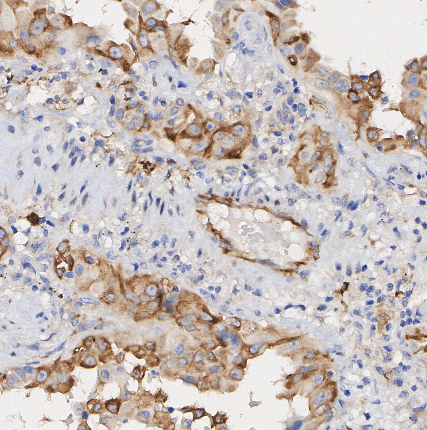 • Immunohistochemical analysis of formalin fixed paraffin embedded human Lung adenocarcinoma tissue with F2119 at 1/50 dilution.