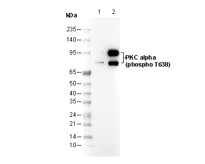 Phospho-PKC α (Thr638) Antibody [E6G7] detects endogenous levels of PKC α only when phosphorylated at threonine 638.