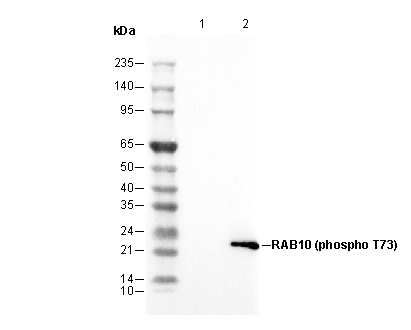 Phospho-RAB10 (Thr73) Antibody [M19N14] recognizes endogenous levels of total RAB10 protein only when phosphorylated at threonine 73 (T73).