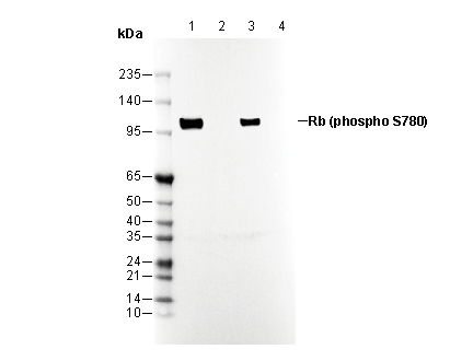 Phospho-Rb (Ser780) Antibody [C10L19] detects endogenous levels of Rb only when phosphorylated at Ser780.