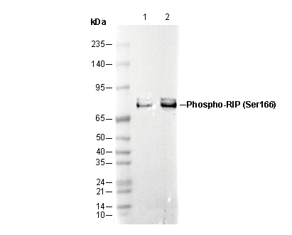 Phospho-RIP (Ser166) Antibody [C18P2] recognizes endogenous levels of RIP protein only when phosphorylated at Ser166.