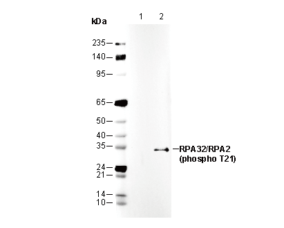 Phospho-RPA32/RPA2 (Thr21) Antibody [H20D7] recognizes endogenous levels of total RPA32/RPA2 (phospho Thr 21) protein.