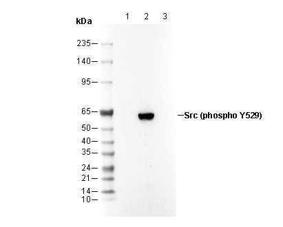 • Lane 1: A431, Lane 2: A431 (EGF treated), Lane 3: A431 (EGF and alkaline phosphatase treated)