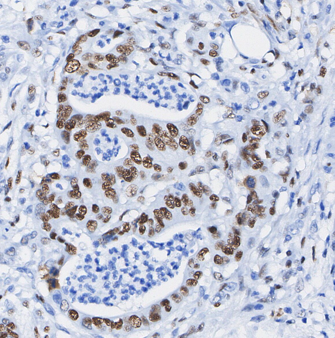 • Immunohistochemical analysis of formalin fixed paraffin embedded human Colorectal cancer tissue with F1212 at 1/100 dilution.