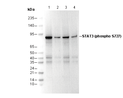 Phospho-STAT3 (Ser727) Antibody [B8F21] detects STAT3 phosphorylated at serine 727.