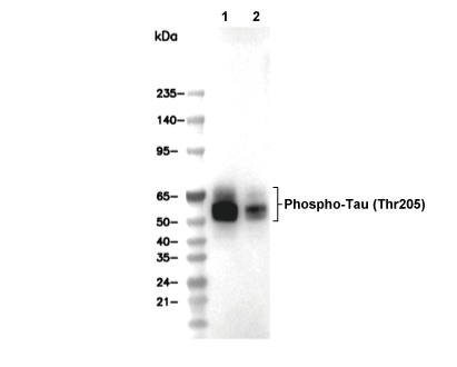 Phospho-Tau (Thr205) Antibody [J19P9] detects endogenous levels of total Tau protein only when it is phosphorylated at Thr205.