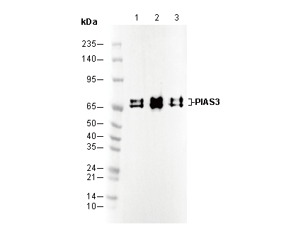 PIAS3 Antibody [G3P18] recognizes endogenous levels of total PIAS3 protein.