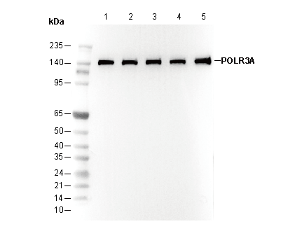 POLR3A Antibody [E12G4] recognizes endogenous levels of total POLR3A protein.