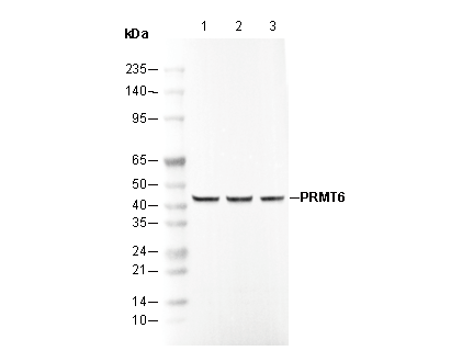 PRMT6 Antibody [H12B3] recognizes endogenous levels of total PRMT6 protein.