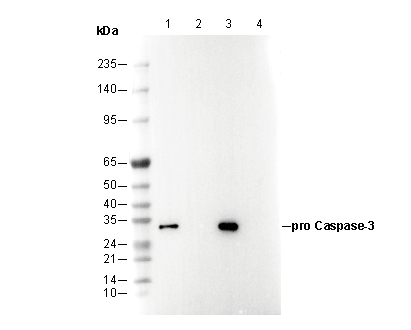 pro Caspase3 Antibody [H9J6] recognizes endogenous levels of total pro caspase 3 protein.