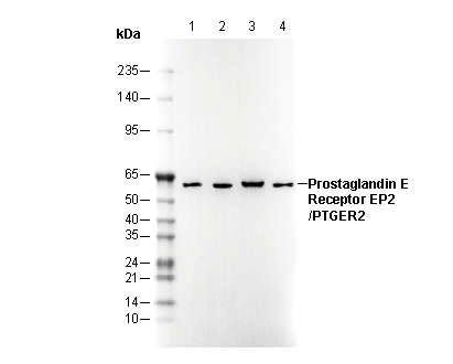 Prostaglandin E Receptor EP2/PTGER2 Antibody [L20C8] recognizes endogenous levels of total Prostaglandin E Receptor EP2/PTGER2 protein.