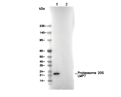 Proteasome 20S LMP7 Antibody [N6D20] recognizes endogenous levels of total Proteasome 20S LMP7 protein.