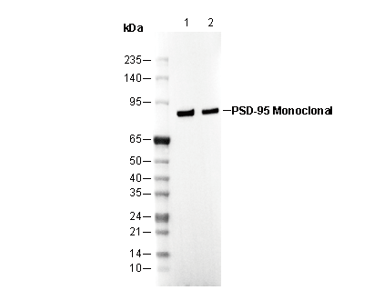 PSD-95 Antibody [H11A14] recognizes endogenous levels of total PSD-95 protein. In immunofluorescence staining, fixation with cold methanol is recommended.