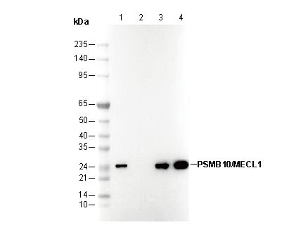 PSMB10/MECL1 Antibody [D18D5] recognizes endogenous levels of total PSMB10/MECL1 protein.