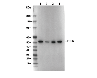 PTEN Antibody [J22G2] recognizes endogenous levels of total PTEN protein.