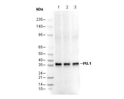 PU.1 Antibody [B4N6] detects endogenous levels of total PU.1 protein. The antibody does not cross react with other Ets family members.