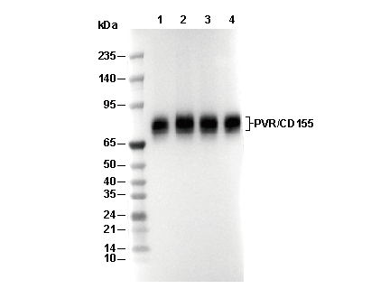 PVR/CD155 Antibody [D7N14] detects endogenous levels of total PVR/CD155 protein.